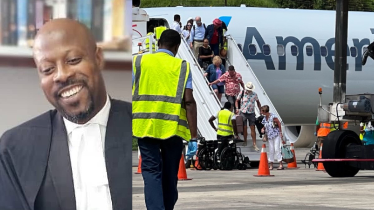 21 March 2026From left: The accused, Warren-Lee Davies and the quantity of cocaine seized at the Argyle International Airport (AIA) i...