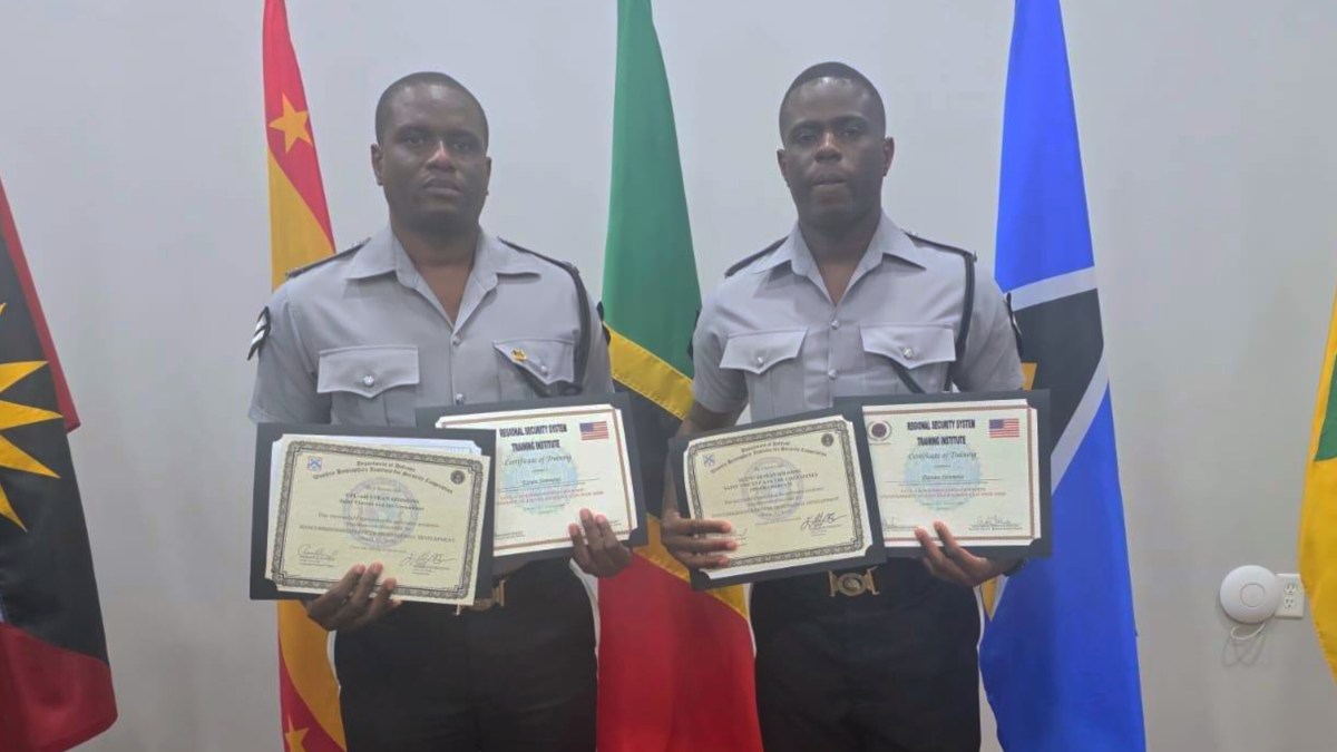 Sergeant Desran Simmons and Corporal Esran Simmons represented Saint Vincent and the Grenadines at the NCO Professional Development Course 1/26, hosted at the Guyana Defence Force Coast Guard Training Facility in Georgetown from February 2 to March 12. The programme was conducted through a partnership between the Western Hemisphere Institute for Security Cooperation (WHINSEC) and the Regional Security System (RSS).